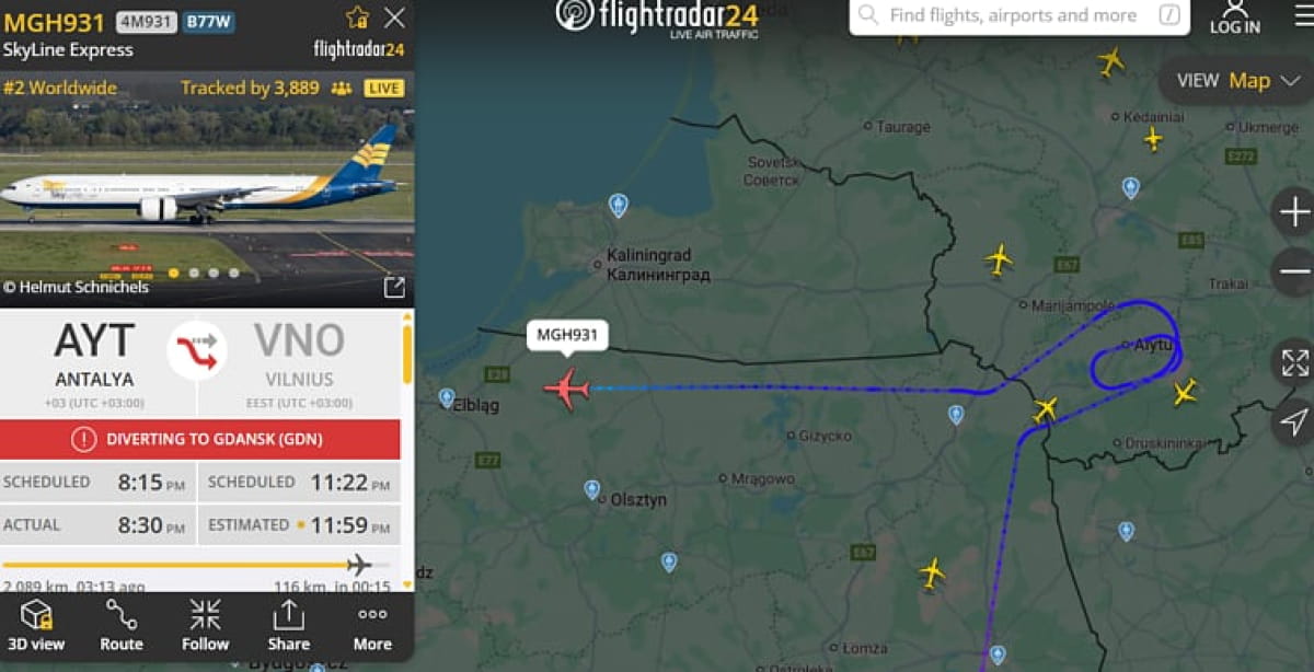 Деякі рейси було перенаправлено на аеродроми Каунаса, Риги та Гданська.