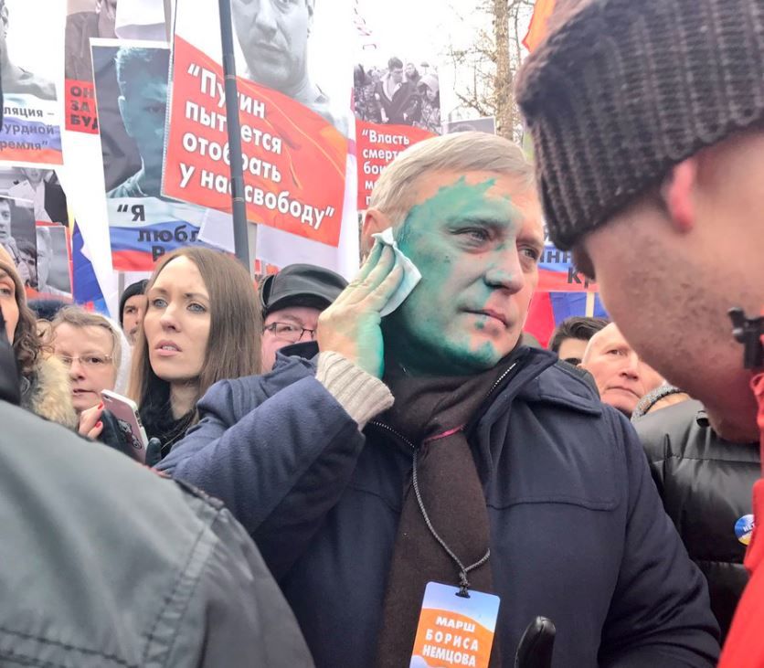 Касьянова неизвестный облил зелёнкой #марш #немцов #маршпамятинемцова pic.twitter.com/a5M77mrHaD