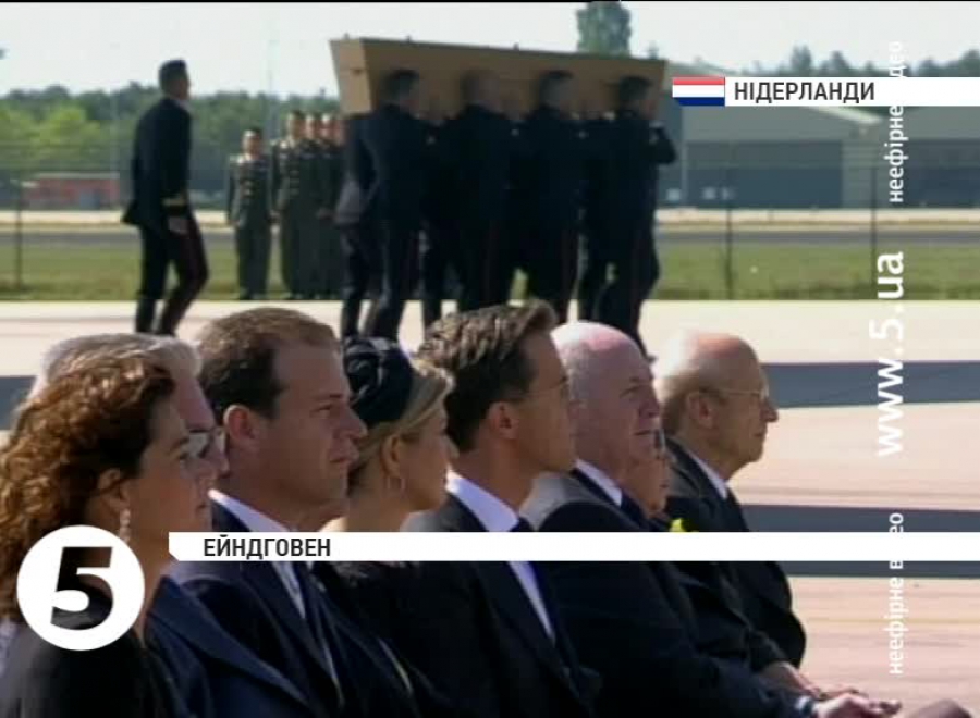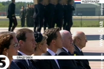 О п’ятій вечора - коли в Ейндговені сіли літаки з загиблими - життя Нідерландів зупинилося на хвилину. В країні оголосили жалобу - вперше за понад півстоліття. На офіційних установах приспустили прапори, до аеропорту продовжують нести квіти. У авіакатастрофі над Донеччиною загинули 193 - голландці. За межами летовища зібралися місцеві мешканці. До церемонії прощання в аеропорту долучилися члени уряду та королівська родина.