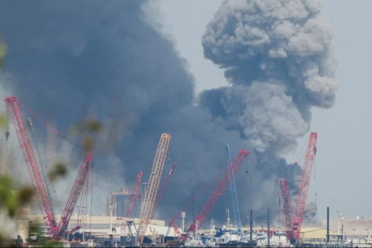 У соціальних мережах поширюють відео місцевих жителів, на яких зафіксовано масштабну пожежу в районі нафтового терміналу.