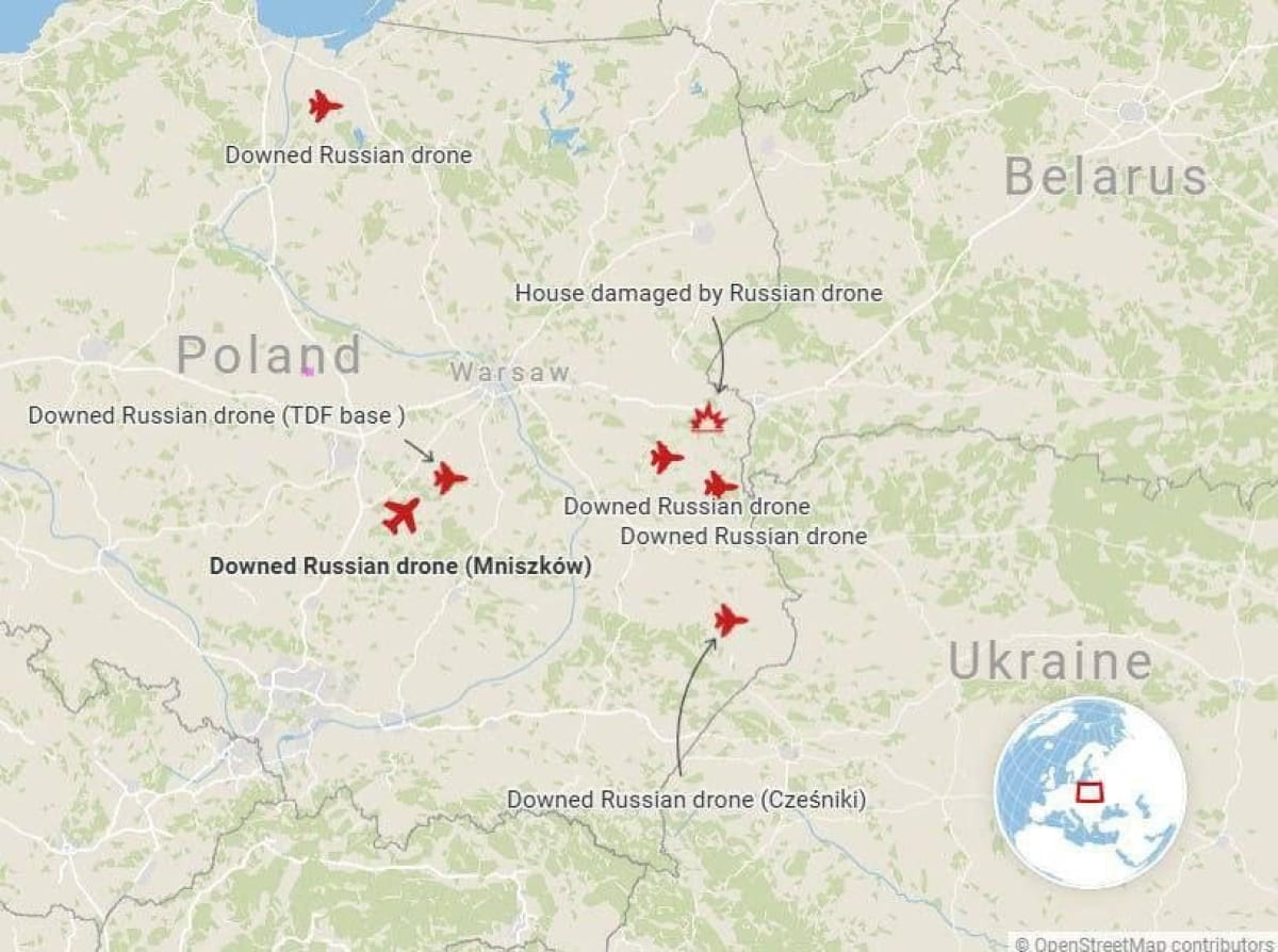 Оновлено. За даними видань Spiegel і Welt. Дрони рф летіли атакувати базу НАТО в Жешуві – щонайменше 5 шт. Зазначається, що там є величезний логістичний хаб, через який здійснюється забезпечення української армії західним озброєнням.