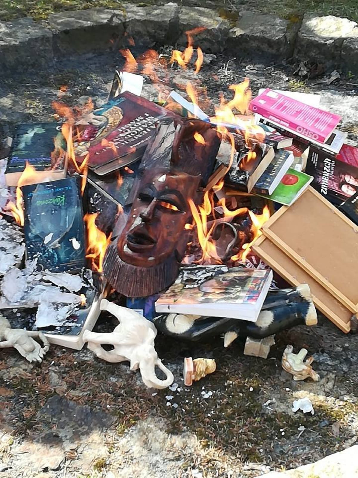 Зазначається, що священики також спалили "Сутінки" Стефані Майєр і кілька зображень язичницьких богів.