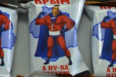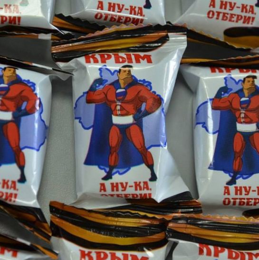 Як пише "Русская служба Би-би-си", на прилавках магазинів ці солодощі з‘явилися ще в березні – одразу після псевдореферендуму в АР Крим.