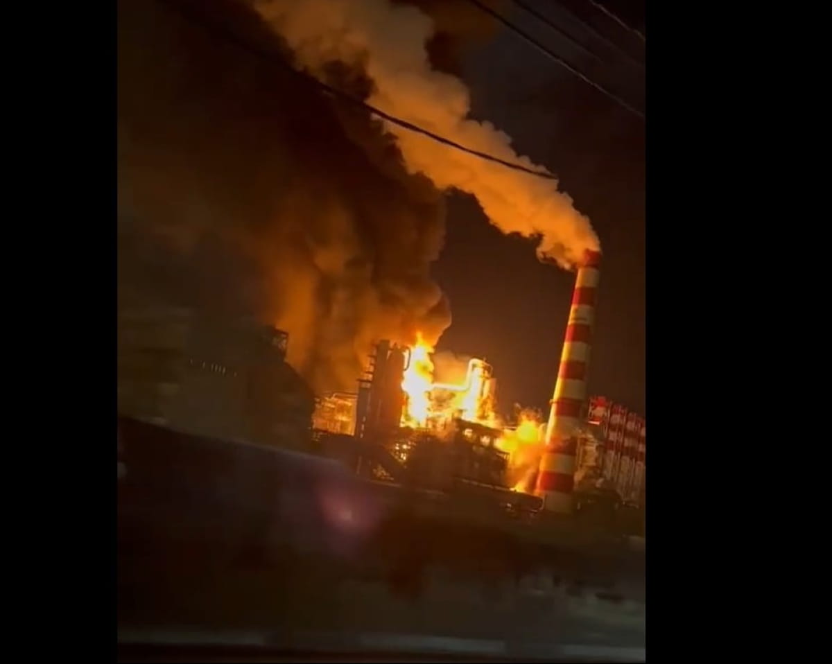 За даними джерел, площа пожежі становить близько 200 кв. Вогонь охопив одну з колон підприємства для перероблювання палива, пожежники зараз намагаються локалізувати спалах.