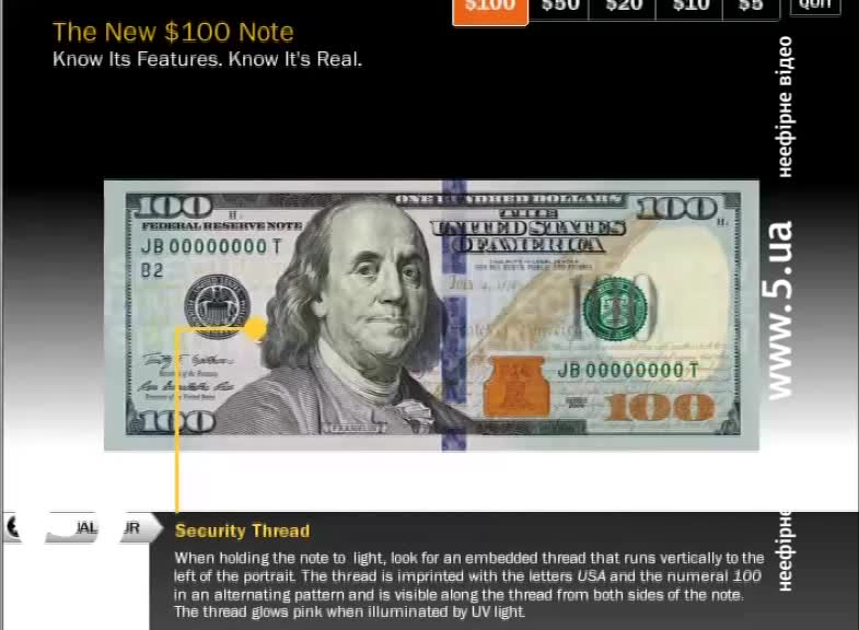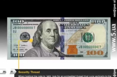 Нові сто доларів - втратили традиційний зелений колір. Натомість у дизайні - переважно синій, сірий та оранжевий. На додачу, купюри мають посилений захист від підробок - зокрема, спеціальні три-де смужки. А от портрет на банкноті - залишиться незмінним - там зображено Бенджаміна Франкліна. Вартість виготовлення одного такого папірця - на три центи вища, ніж для купюр попереднього зразка, і становить 14 центів. Старі купюри - вилучатимуть з обігу поступово, відпо