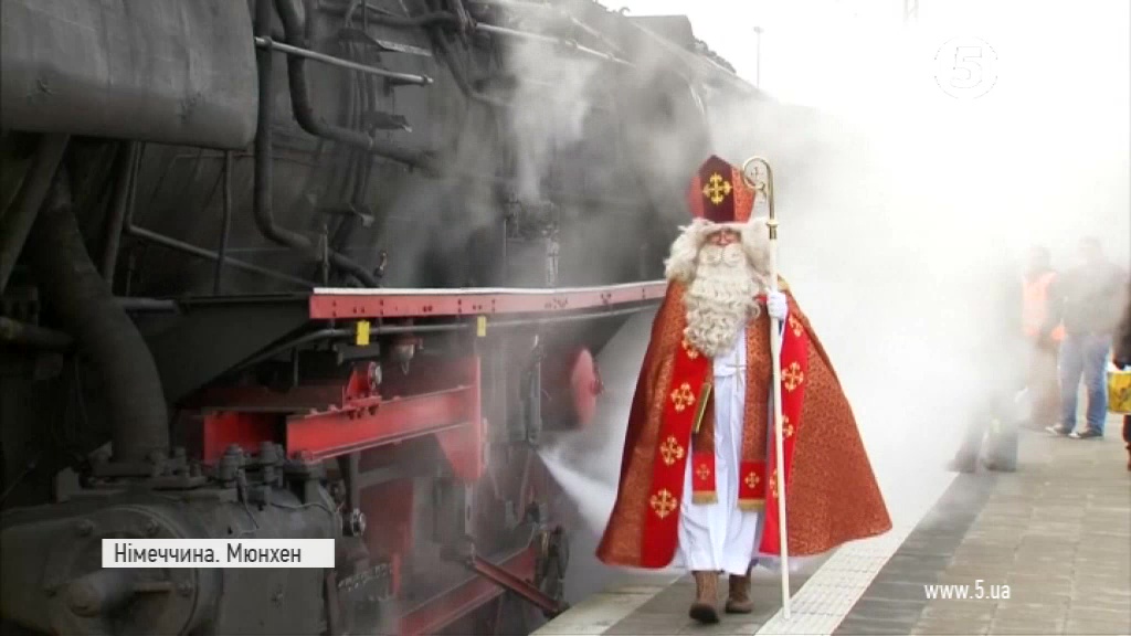 Святковий транспорт у Святого Миколая не новий, паровому потягу вже майже 100 років. Таку мандрівку для малечі у Мюнхені влаштовують щороку. Солодкі подарунки дітлахи отримали дещо зарано. День святого Миколая німці святкуватимуть 6 грудня. В Німеччині його вважають помічником Санти.