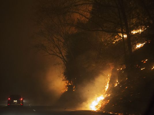 Лісові пожежі в Теннессі не вщухають від середини листопада. Минулої ночі вогонь швидко поширився через сильний вітер.