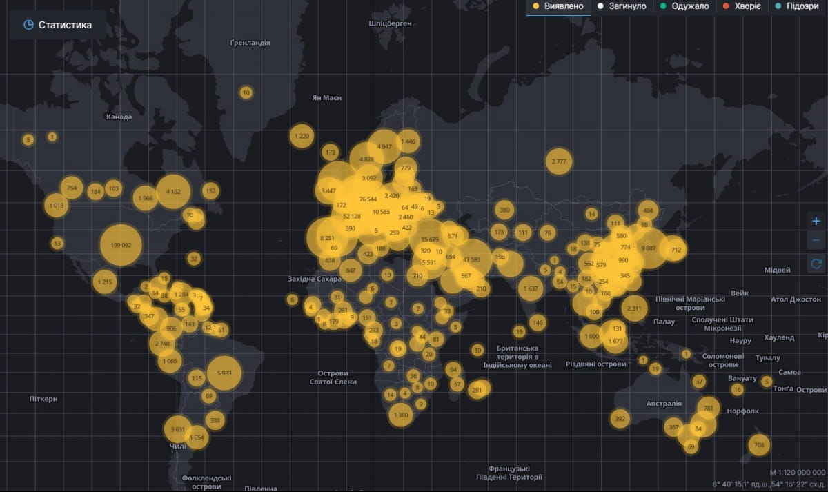 Актуальну інформацію щодо поширення коронавірусу в Україні та світі можна переглянути на електронній мапі.