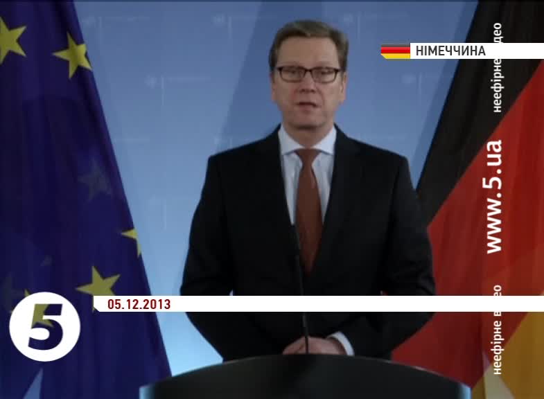 Водночас, Гідо Вестервелле в інтерв'ю каналу ЦДФ, відкинув звинувачення про те, що Євросоюз став на бік опозиційних сил. Ми не стаємо на бік окремих партій, ми стаємо на бік Європейської справи, за європейські цінності, наголосив Вестервілле. Голова зовнішньополітичного відомства Німеччини вкотре закликав українського президента підписати Угоду про асоціацію з ЄС. Наші двері й надалі відкриті. Наш заклик до Януковича - підписуйте! Співпрацюйте з Європою! Адже це найкраще для країни, запевнив Вестервелле.