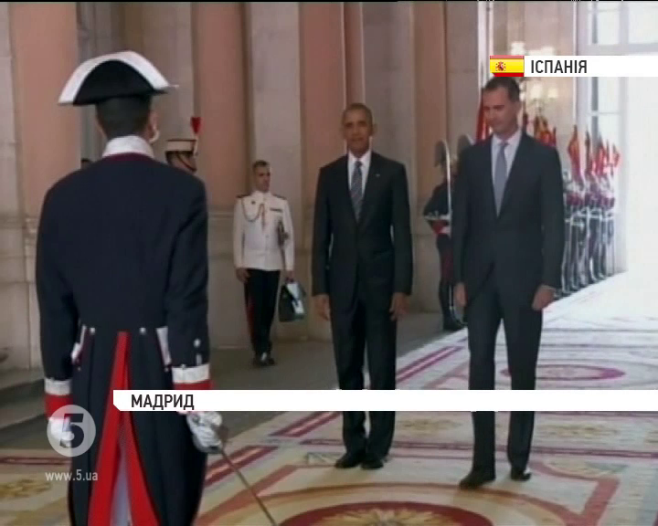 Перший за роки президентства Барака Обами відбувся офіційний візит до Іспанії. Президент США вночі прибув до Мадрида і у ці хвилини зустрічається з королем країни Філіппом VI. Також у планах Обами - зустріч із прем'єр-міністром Маріано Рахое та представниками опозиції.