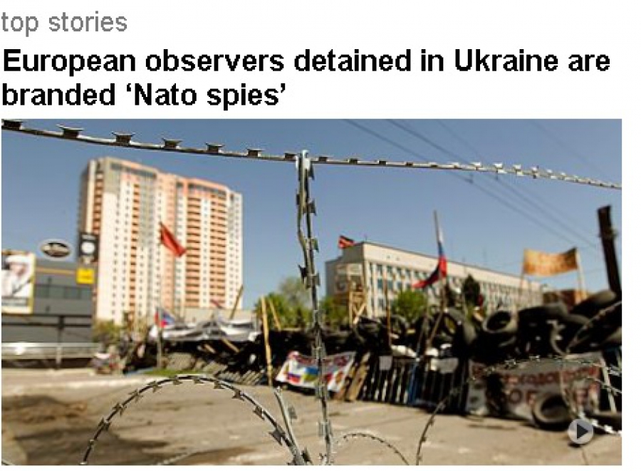 Росія обіцяє зробити все можливе для звільнення міжнародних військових спостерігачів, але проросійські екстремісти продовжують називати їх шпигунами НАТО і утримувати у підвалі у Слов'янську. Цю суперечність у найважливішій новині дня відзначає арабський телеканал AlJazeera. Кореспондент цього медіа в Донецьку – Барнабі Філіпс – розповідає, що місія ОБСЄ проводить переговори з лідерами сепаратистів про звільнення заручників.