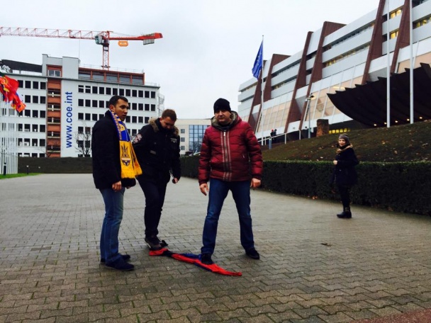 Крім цього протестувальники помітили біля входу до приміщення ПАРЄ лідера російських комуністів Геннадія Зюганова.