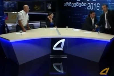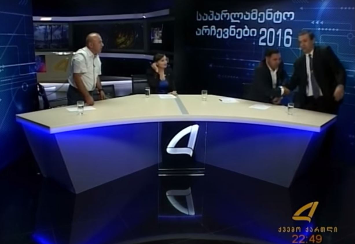 Напередодні парламентських виборів у Грузії, у прямому ефірі побилися двоє кандидатів у депутати. Бійка сталася в прямому ефірі телеканалу Kvemo Kartli після того, як один з учасників дискусії жбурнув у співрозмовника ручкою, повідомляє "Укрінформ" із посиланням на українське ЗМІ.