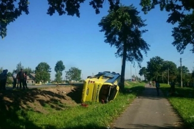 Зазначається, що водій заснув за кермом, внаслідок чого наїхав на світлову опору та перекинувся в кювет. До лікарні було доставлено 12 осіб. Медики зазначають, що серйозних травм ніхто не отримав.