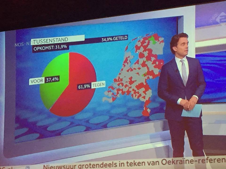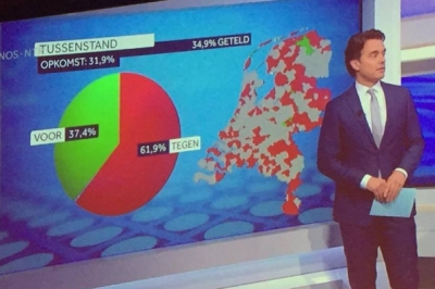 Як повідомлялося, за даними екзит-полів, 64% нідерландців проголосували проти асоціації між Україною та Європейським Союзом, 36% висловились за. Явка склала близько 32%.