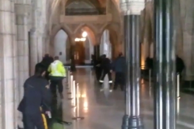 Повідомляється також, що кілька пострілів зловмисник здійснив за лічені метри від кабінету, де знаходився прем‘єр-міністра країни Стівен Харпер.
