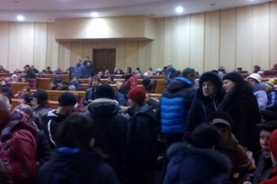 Наразі в приміщенні міської ради перебуває приблизно 100 мітингувальників. Громадський порядок в приміщенні та навколо нього охороняють співробітники міліції.
