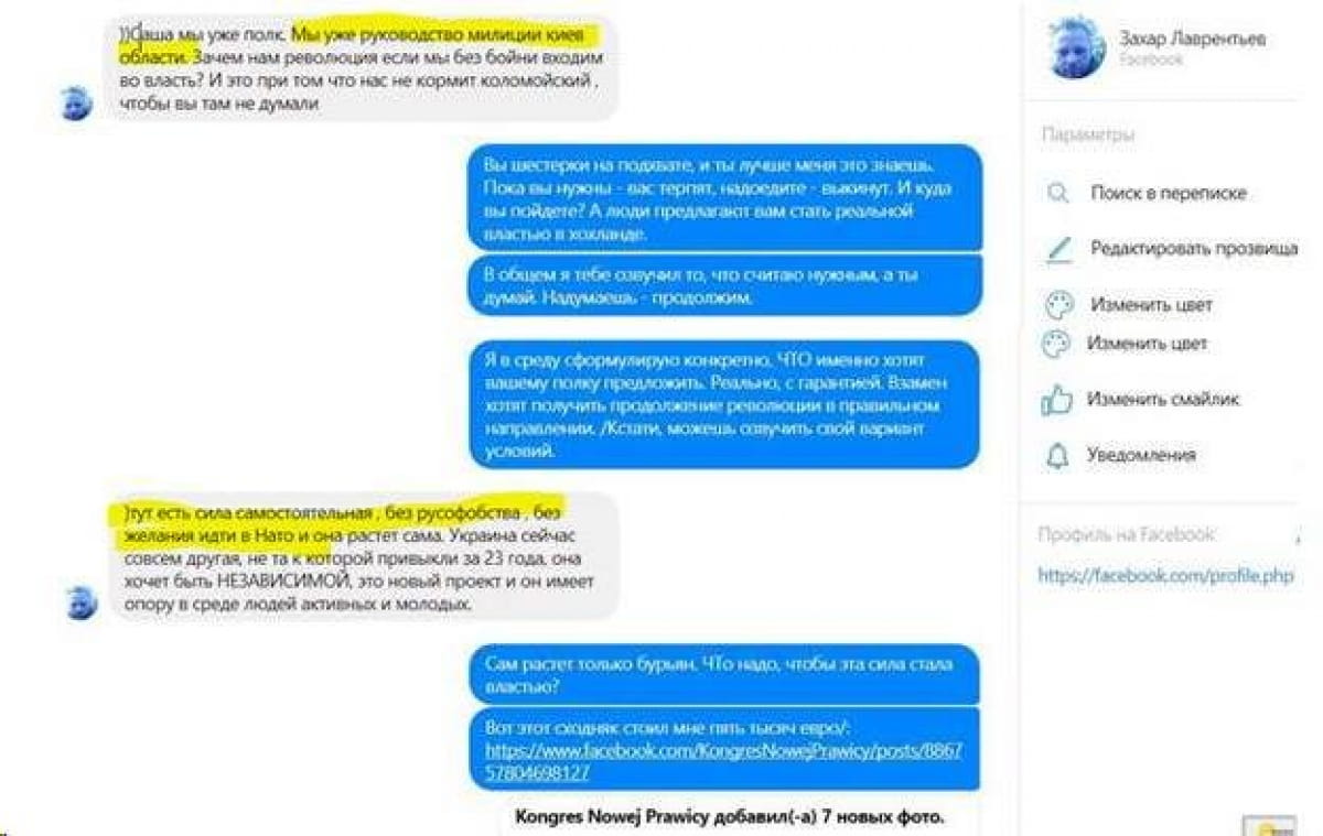 Крім того, пише блогерка, Коротких пов'язаний з росіянином Усовським, про що свідчать скріни їхнього листування від листопада 2014 року. Розмовляють обидва про так званий Третій Майдан.