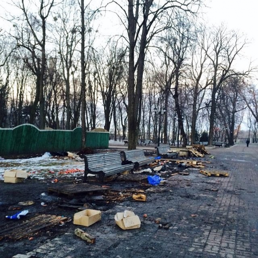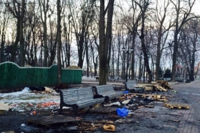 Бригинець зазначив , що в лютому нинішнього року на території столичного Маріїнського парку проживало величезна кількість осіб , що брали участь у проведенні суспільно -політичних акцій на підтримку Януковича. Після цього стан і зовнішній вигляд парку істотно погіршилися. Так, територію парку засмітили, зруйнували елементи зовнішнього дизайну, утрамбували грунт, пошкодили парковий дерен, дерева і коріння дерев внаслідок установки бочок та розпалювання багать для обігріву людей.