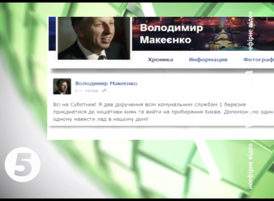 У своїй сторінці на «Фейсбуці» чиновник написав: усім комунальним службам дав доручення долучитися до ініціативи киян та вийти на прибирання столиці. В телефонній розмові з 5-м каналом Макеєнко не повідомив, які саме служби будуть братися за благоустрій. Євромайданівці кажуть – на толоку вийдуть тільки після чиновників. А от барикади розбирати не збираються.