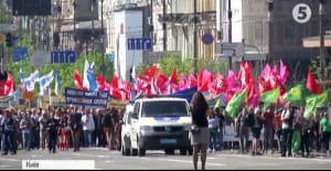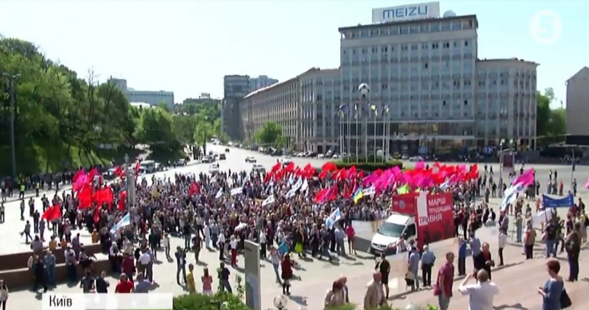 Сотні людей зібралися на марш та мирний мітинг з нагоди Дня праці у столиці України. Першотравневу демонстрацію влаштували профспілки і політичні сили лівого спрямування. Під звуки барабанів вони пройшлися Хрещатиком до Європейської площі, де і влаштували мітинг.