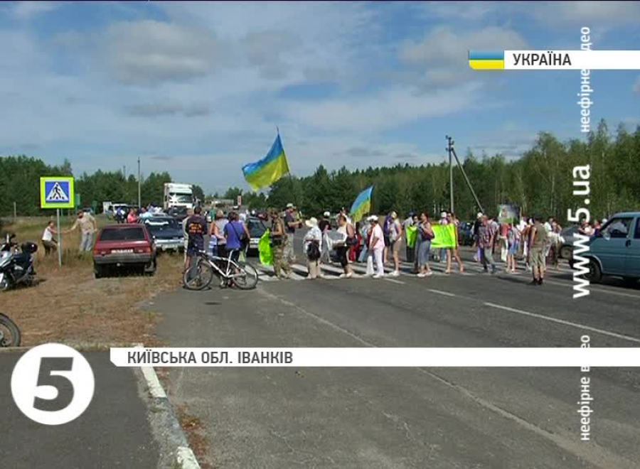 Кілька десятків мешканців селища Іванків на Київщині перекрили трасу. Вимагали закрити теплоелектростанцію, яку збудували поряд із їхніми домівками, бо побоюються, що на ТЕС спалюють деревину із зони відчуження, і селянам доводиться дихати радіоактивним димом.