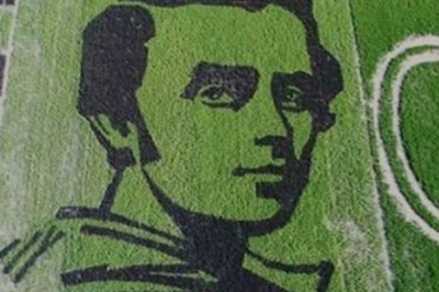Площа портрета складає 1370 кв. м. Зображення створили, виростивши рис з чорними листям на зеленому полі.