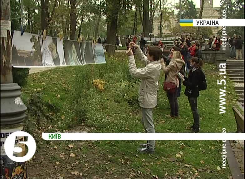 Михайло Топол, організатор акції, студент КПІ: «Фотовыставка фотографий, где каждый участник можей прийти, посмотреть на фротографии и забрать, которые ему понравятся. То есть, а сам формат в том, что они сушатся на бельевой веревке. Есть и любители, как говорится – простые аматоры, так и профессионалы».