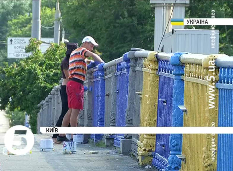 Активісти за власний кошт купують фарбу і розмальовують вулиці в синьо-жовті кольори. Так, вже розфарбували Русанівську набережну, кілька десятків дитячих майданчиків та під’їзди багатоповерхівок. Патріотичним скоро стане також Південний міст та Повітрофлотський.