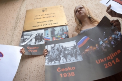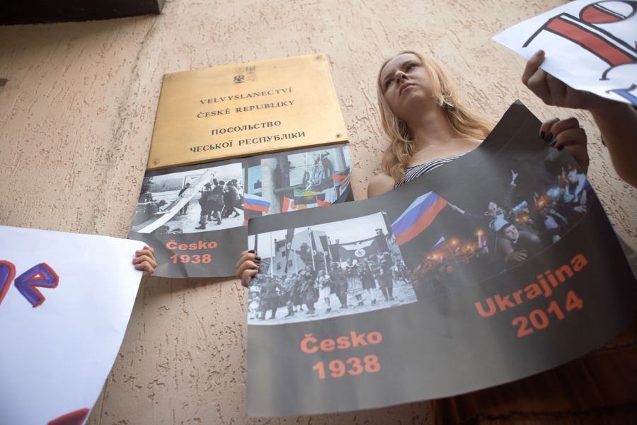 Зокрема, зазначено, що ця акція протесту викликана нещодавніми заявами глави Чеської республіки. Так, президент Чехії Мілош Земан напередодні публічно заявив, що не вважає дії Росії на Донбасі в Україні військовим вторгненням.