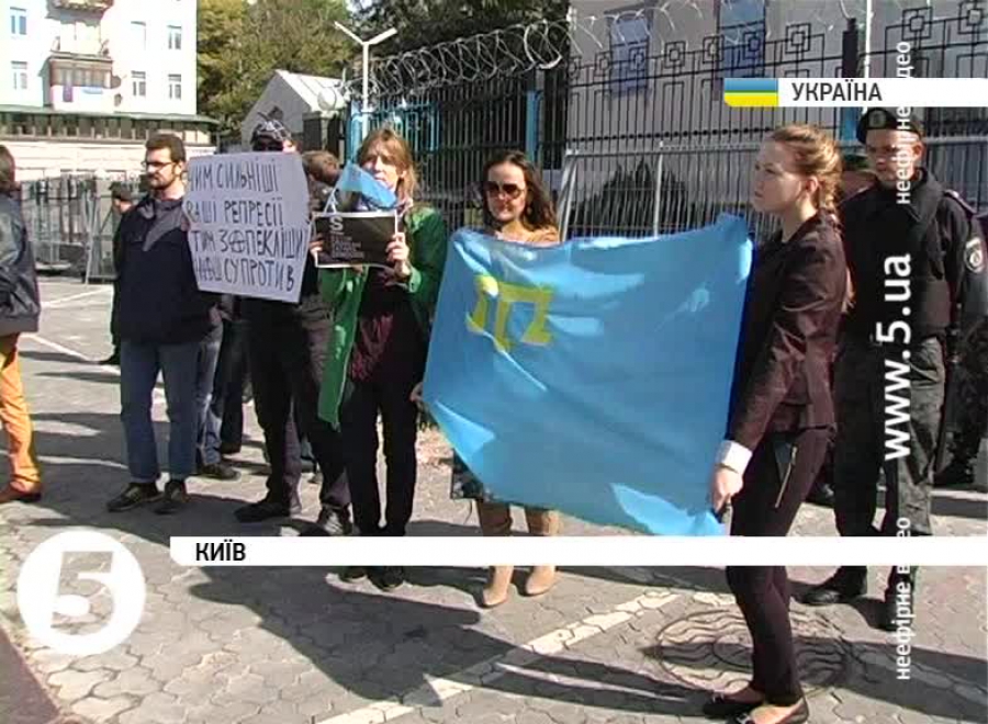 Мітинг почали з хвилини мовчання за чотирма загиблими у Криму від рук окупантів. Після цього розклали перед посольством понад півсотні документів, де зафіксовані правопорушення протягом півроку – це викрадання людей, заборона в'їзду, незаконні перевірки. За даними протестувальників, у Криму триває тиха війна проти людей з громадянською позицією. Протягом вересня щодня відбуваються обшуки у школах, бібліотеках та оселях кримських татар. Людей звинувачують в екстремізмі.