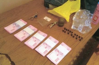 "Під час затримання у нього вилучено 100 тисяч гривень готівкою, гранату РГД-5, набої до вогнепальної зброї та 300 грамів наркотичної речовини. Триває слідство", - підкреслили у СБУ.