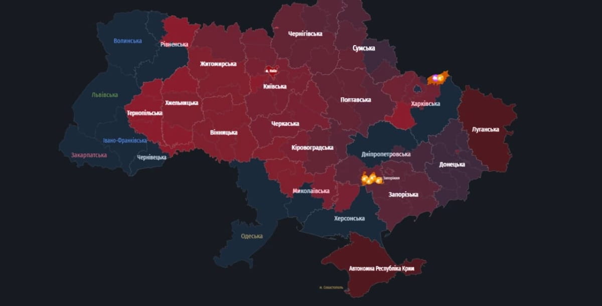 Також нові групи дронів заходили з боку Херсонщини у напрямку Миколаївської області, зокрема курсом на Новий Буг. Безпілотники фіксували і над Вінниччою — курсом на Теплик та Ладижин.