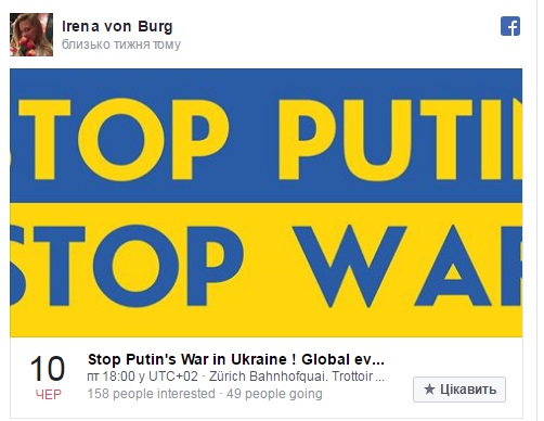 10-11 червня у багатьох країнах Євросоюзу, а також в США, Канаді та Україні відбудуться громадські акції під гаслами "Стоп, Путін! Стоп, війна!" Про це повідомляє "Радіо Свобода".