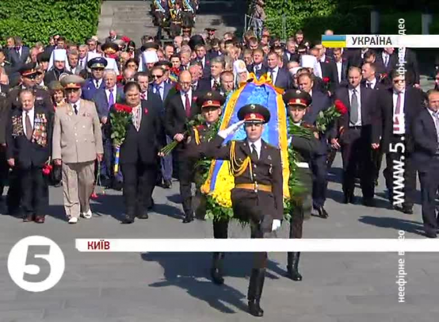 Без сутичок та провокацій минули урочистості із нагоди перемоги над нацизмом. Зранку у парку Слави поклали квіти перші особи держави. Тим часом, біля метро "Арсенальна" збиралося чимало киян, які прийшли вшанувати пам'ять загиблих родичів. Громадський же порядок у середмісті кілька тисяч міліціянтів та кілька сотень представників Самооборони.