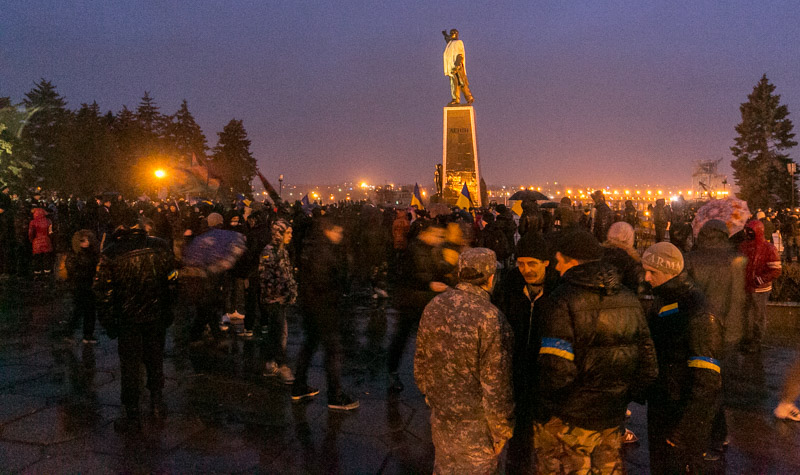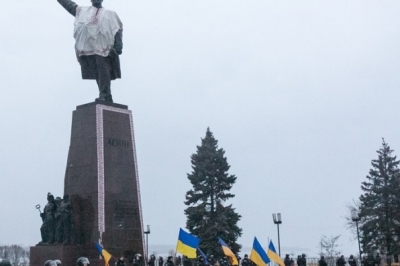 Як повідомляє видання "РБК-Україна", активісти почали збиратися на площі о 16:00. Пам'ятник був з учорашнього дня обгороджений залізним парканом і перебував під охороною близько сотні правоохоронців зі щитами та у захисній амуніції. Зазначається, що близько 10 міліціонерів стояли перед кордоном з прапорами України в руках.