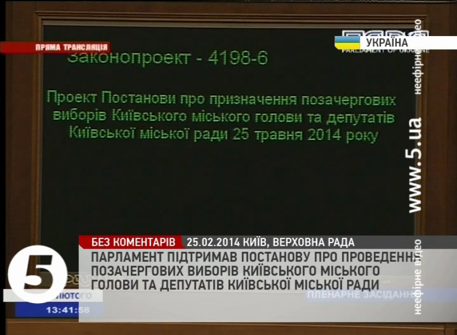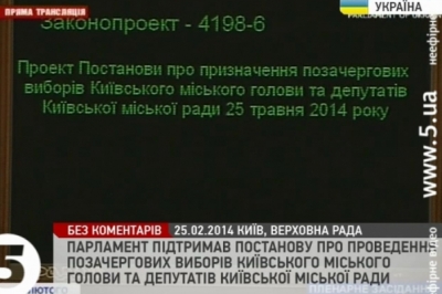 Нагадаємо, на 25 травня Верховна Рада також призначила позачергові вибори президента. Проведення їх одночасно з київськими зекономить кошти – вважає спікер Турчинов.